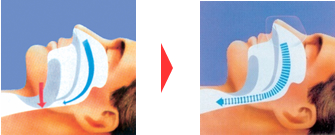 マウスピースを装着することで、下あごが前方に固定され、舌も前へ引っ張られます。咽頭部が広がり空気が通るようになるため、無呼吸状態になりにくく、いびきもかきにくくなります。手術の必要が無く、口に装着するだけで治療が可能です。